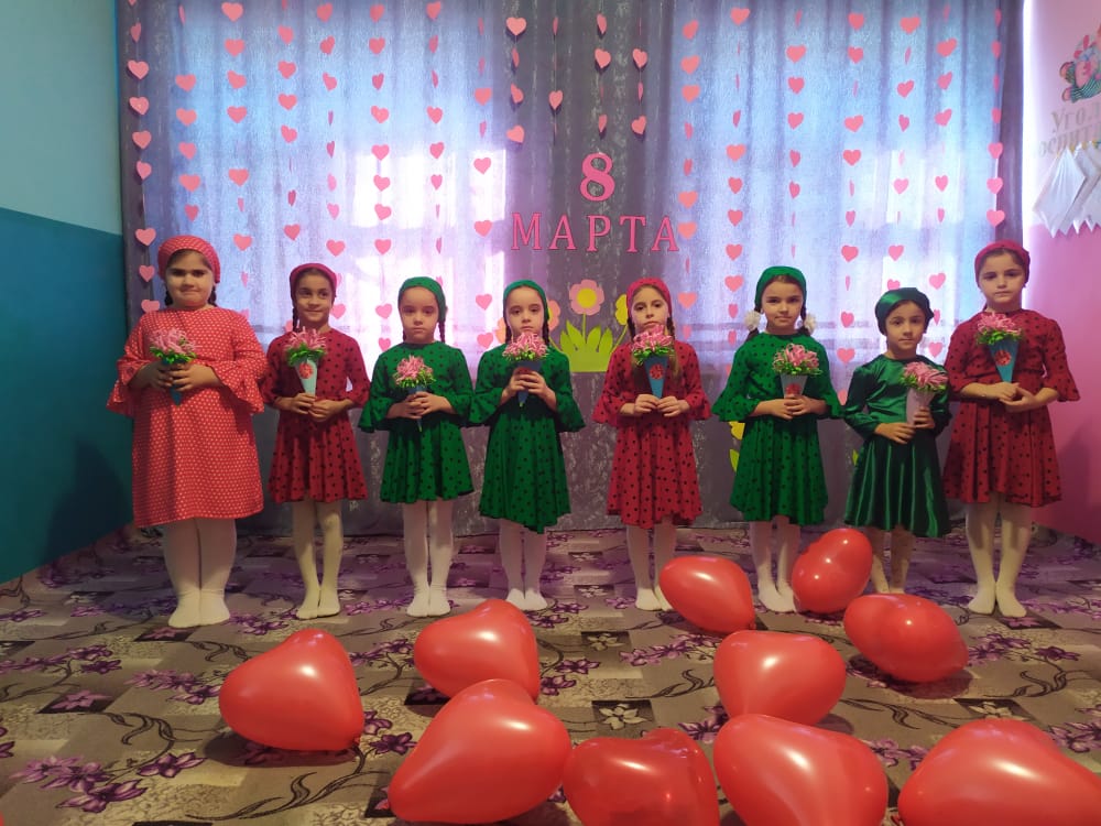 Мы любим его за приятные хлопоты, за улыбки наших мам, а значит всех женщин . Зал был красочно оформлен. Воспитанники готовились, к утренникам репетировали танцы, песни, сценки. Наш утренник прошел в торжественной, радостной атмосфере,